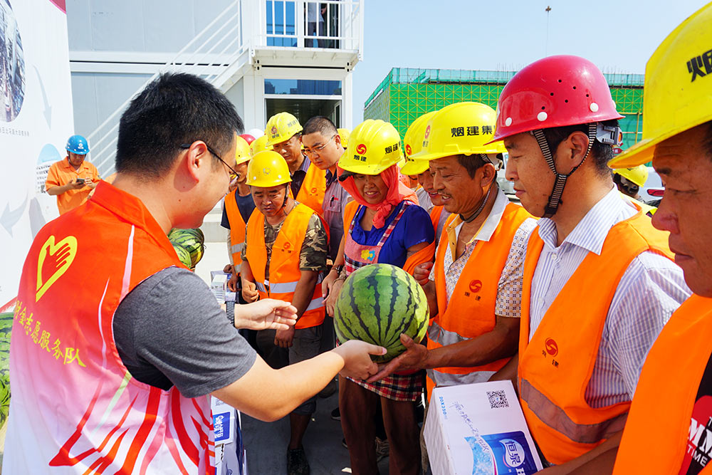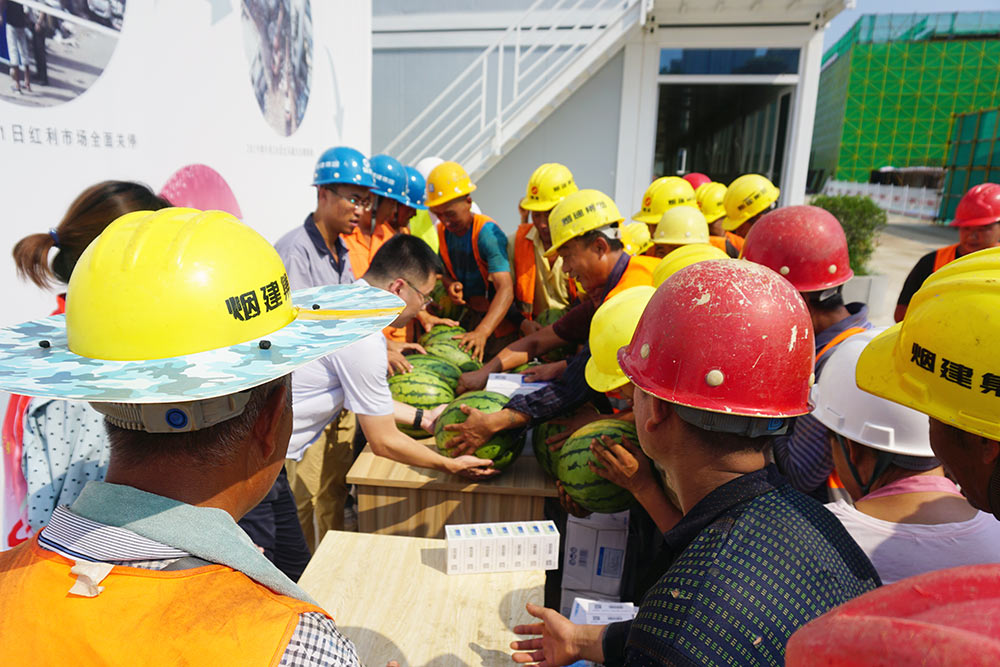 眼下,雖已立秋,但持續(xù)的高溫天氣,讓建設(shè)工地的工人們?nèi)皂斨籽琢胰?,揮汗如雨,迎戰(zhàn)“烤”驗(yàn)。為促進(jìn)一線工人身心健康,實(shí)現(xiàn)工地安全生產(chǎn),8月18日上午,財(cái)政監(jiān)管市屬國有企業(yè)“紅色先鋒”黨建聯(lián)盟一行20名黨員代表,來到芝罘灣廣場建設(shè)工地,組織開展了“進(jìn)工地送清涼”活動(dòng),為工人們送上西瓜、礦泉水、藥品等降暑物品,向堅(jiān)守在高溫下的一線工人送去清涼和關(guān)懷。